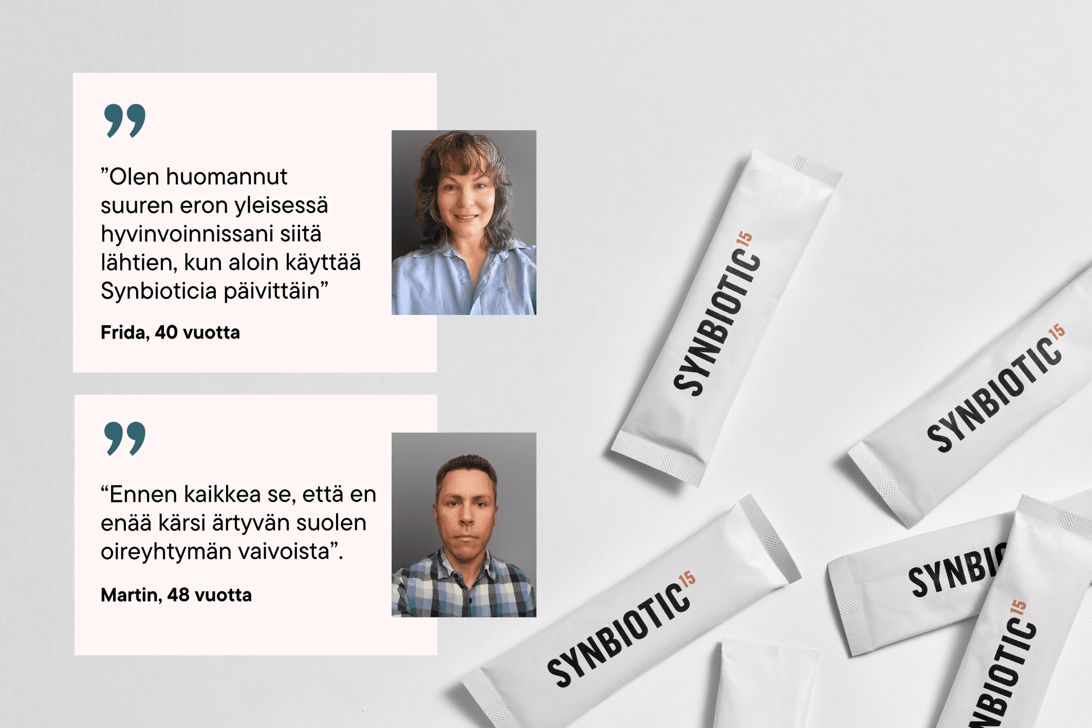 Aloitin Synbioticin käytön, koska sain ärtyvän suolen oireyhtymän burnoutin seurauksena. Minun piti löytää tapa päästä eroon ärtyvän suolen oireyhtymän oireista. Luin paljon terveydestä ja löysin sitä kautta Synbioticin ja halusin kokeilla sitä ärtyvän suolen oireyhtymän oireisiini.