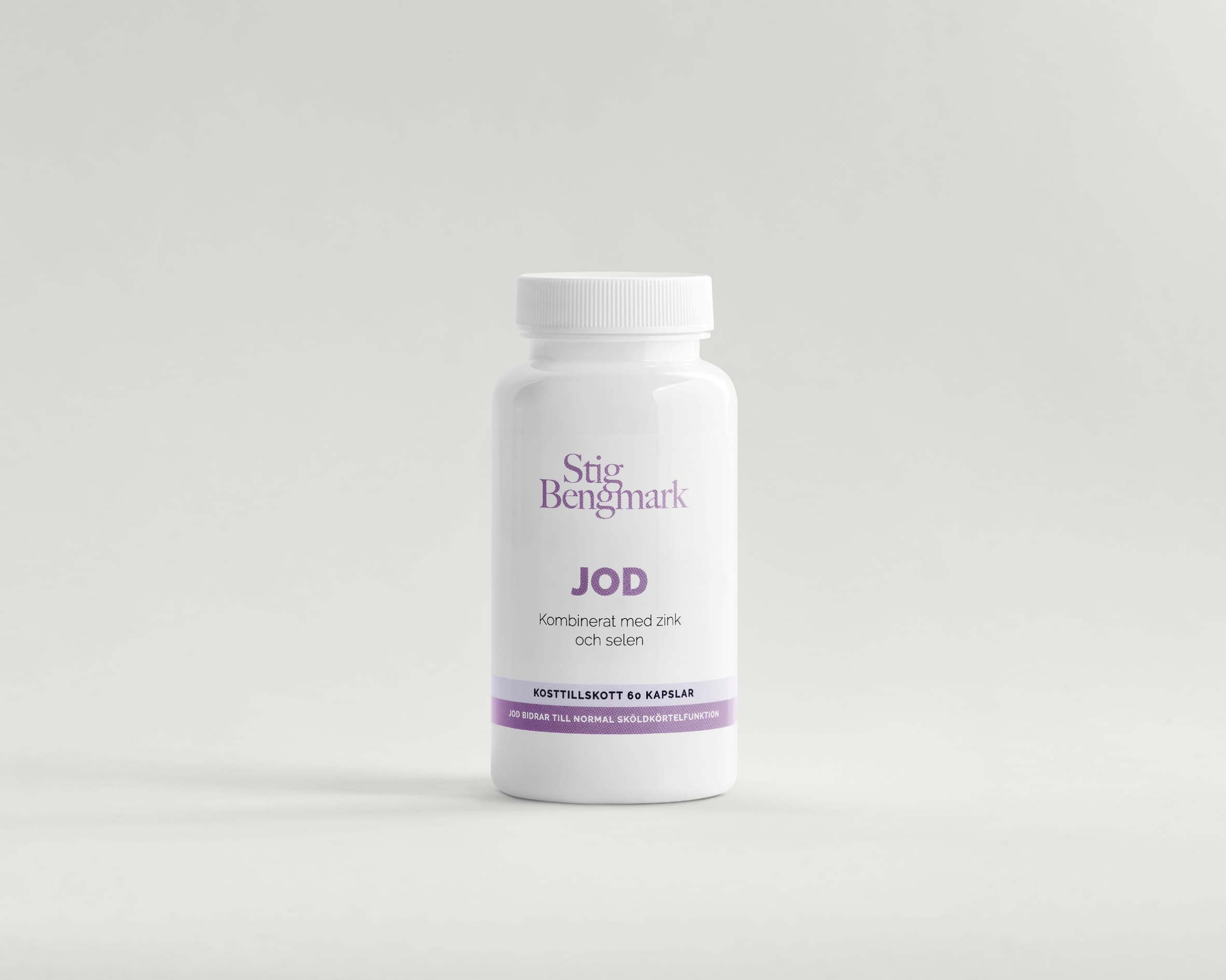 Stig Bengmarks JOD är ett veganskt kosttillskott, som bidrar till normal sköldkörtelfunktion.